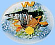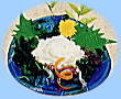 そのひょうきんな姿とのんびりとした動きが人気のマンボウ。白い身を手でさいて、酢味噌で味わいます。別名”サメの身”とも呼ばれる珍味です。 |